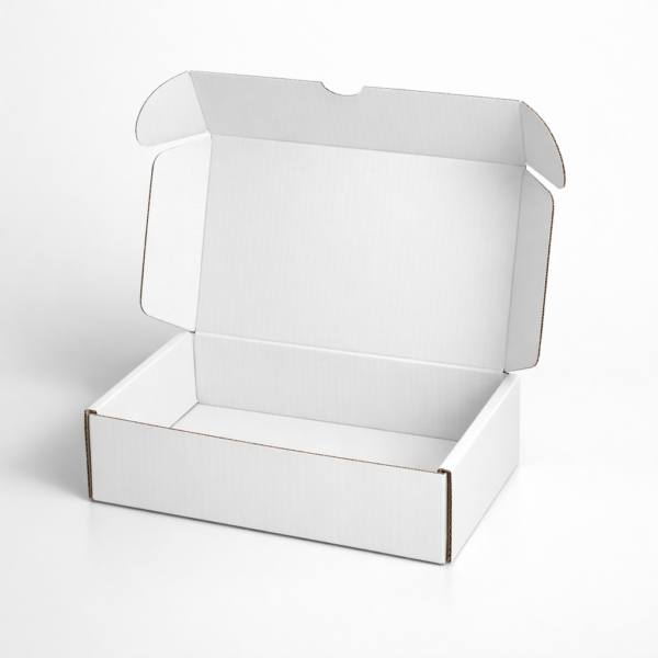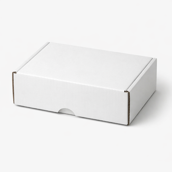 Boîte d’expédition blanche vierge, parfaite pour l’envoi sécurisé de vos produits. Personnalisable.