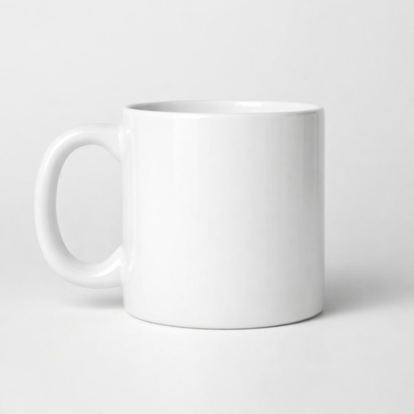 Mug en céramique blanc vierge, parfait pour les boissons chaudes. Surface lisse prête pour l’impression de logos ou de motifs.