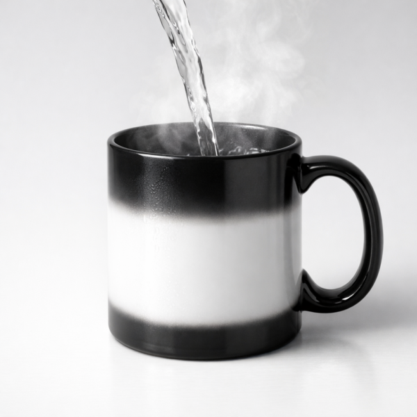 Mug magique noir vierge qui révèle votre design à la chaleur. Un cadeau surprenant et personnalisable.